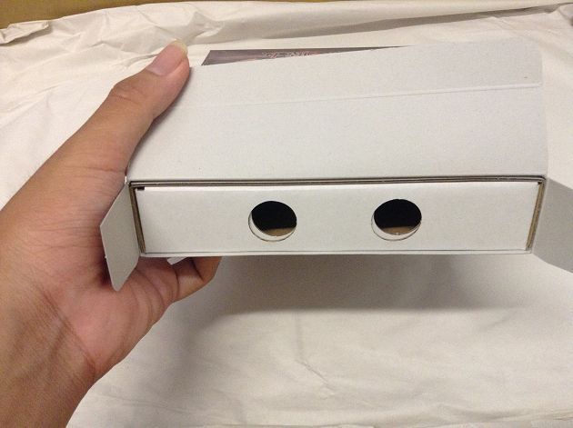 從上面拆開後,發現有兩個洞給你的手指去阿斯,讓你不會因拿內盒而傷到盒子本身